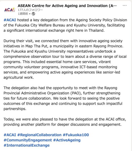 タイの「高齢化」と、日本の「都市・地方両面のケアモデル」が出会えば、新しいヒントが生まれます。
